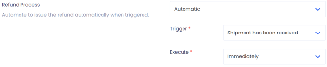 Automatically issue returns based on triggers that you set, either immediate or delayed, that will trigger the refund automatically.