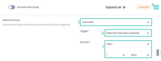 Tip: The configuration shown in the example image means that the refund will be automatically processed a day after you receive the return shipment.