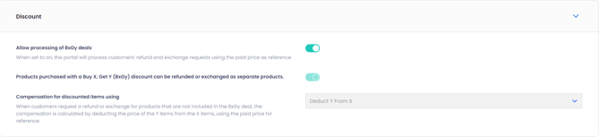 - If disabled, the portal will show items purchased with a BxGy discount as ineligible for returns.
