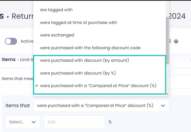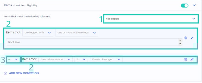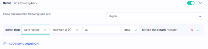 ReturnGO currently supports the following item-level eligibility rules: