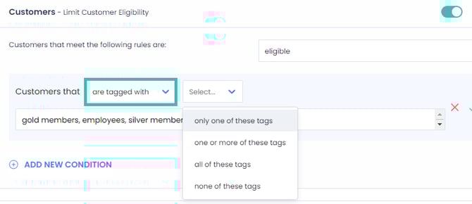 Eligibility based on customer tag