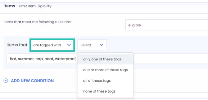 Eligibility based on the item's tags