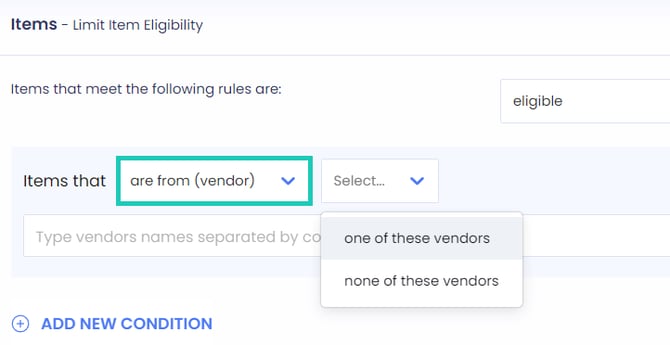 Eligibility based on vendor