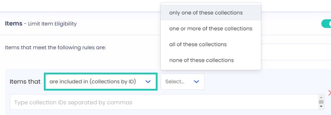 - Define a limit based on the collection ID where the item is included.