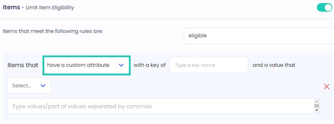 - Define a limit based on the item’s custom attribute with its key and value.