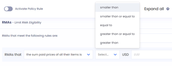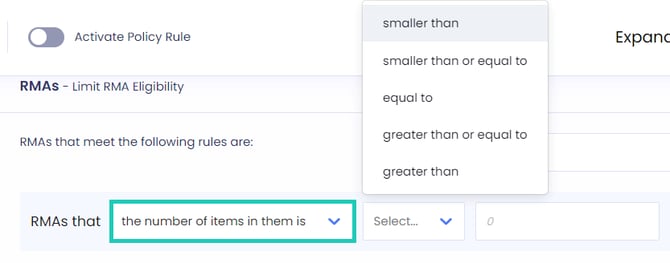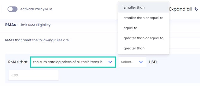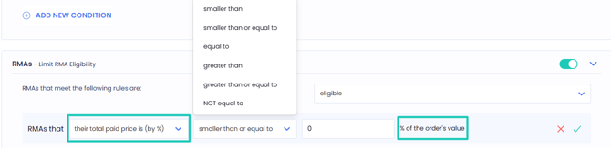 - Define eligibility based on the value of the RMA in relation to the order value.