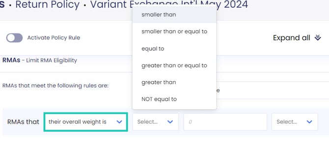 - Define a limit based on the overall weight of the items in the RMA.