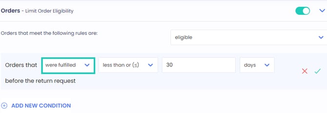 - Define an eligibility limit based on the order's fulfillment date in relation to the current date.