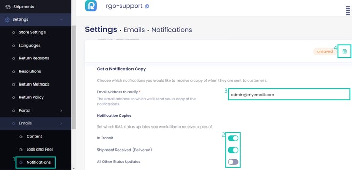 - In the Get a Notification Copy section, enter the email address to which ReturnGO should send a copy of the email.