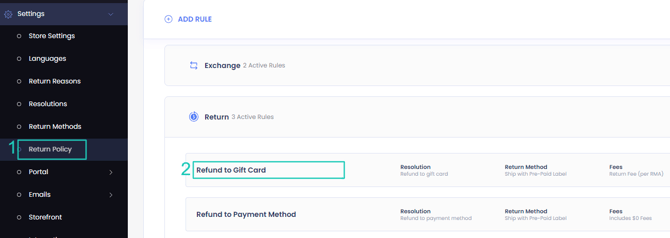 Note: Return label fees can only be applied to a policy rule with a return method type of ship with any carrier or ship with pre-paid label.