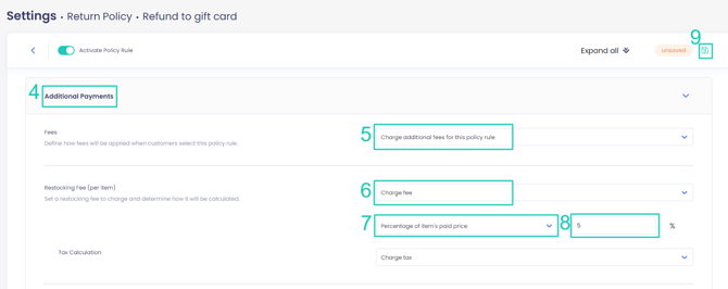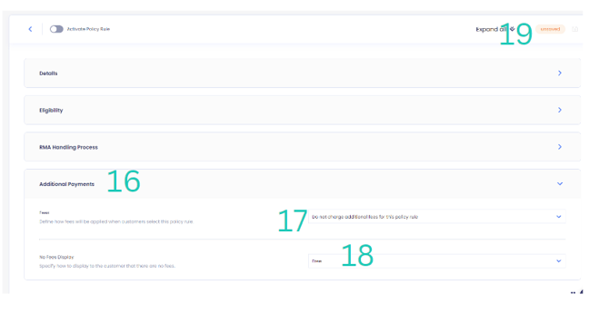 - Select Do not charge additional fees for this policy rule to offer free return labels for eligible customers who select this policy rule.