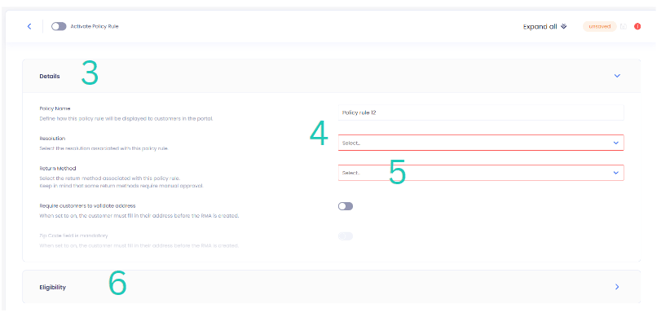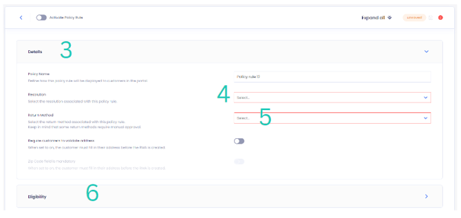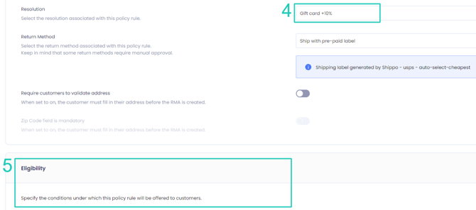 To offer free return labels for a specific set of customers, you can create a return policy rule and set customer-level eligibility rules to determine who qualifies for free return labels.