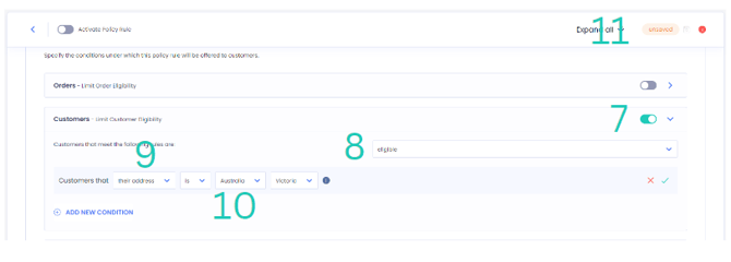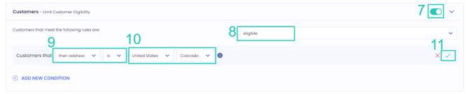 7. Toggle Customer to set eligibility conditions based on customer location.