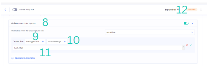 To make certain orders ineligible for return based on a specific tag, you can adjust your policy rules to exclude these tagged orders.