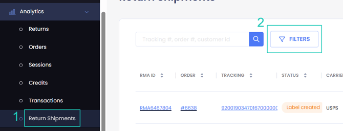 - Go to Analytics > Return Shipments.