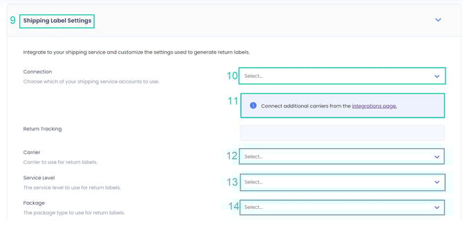 11. Select the Carrier to use for return labels.